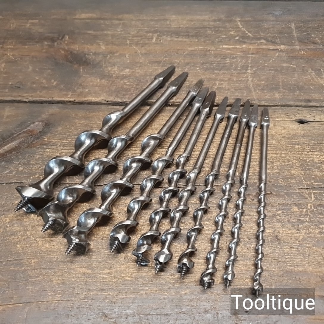 You are here: Home / Vintage Set 10 No: Carpenters Irwin Pattern Brace Auger Bits - Refurbished Tor Use / Vintage Set 10 No: Carpenters Irwin Pattern Brace Auger Bits – Refurbished Tor Use