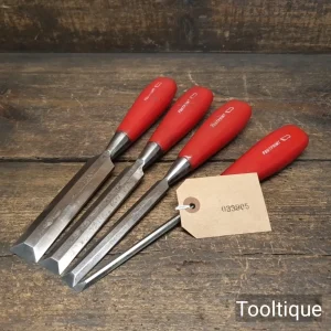 You are here: Home / Vintage Set of 4 No: Footprint Sheffield Bevel Edge Chisels - Fully Refurbished / T34156 (1)