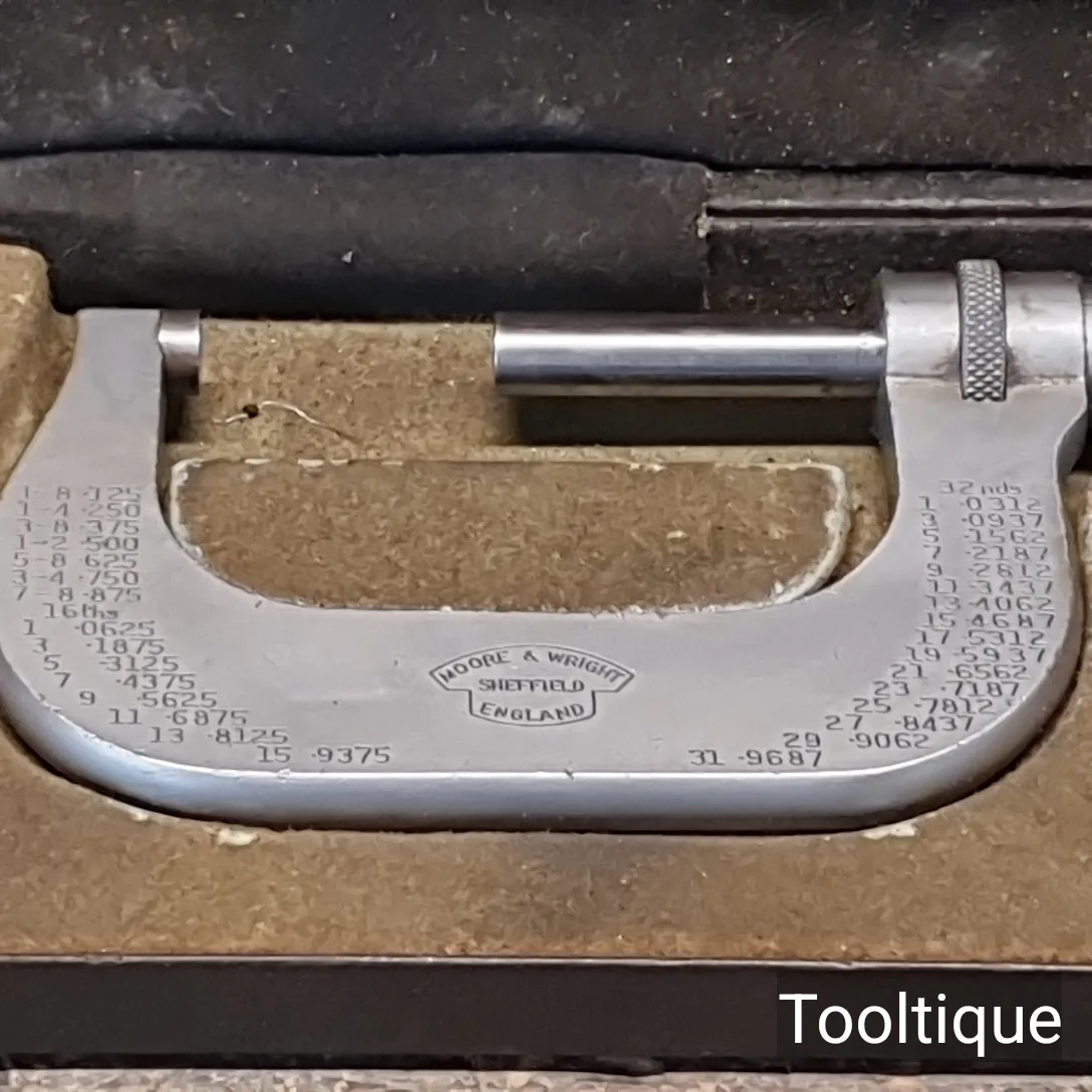 You are here: Home / Vintage 1-2” Moore & Wright No: 961 Engineers Imperial Micrometer in Case / T34151 (3)