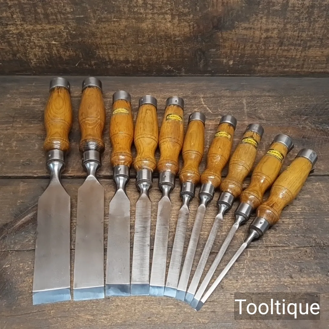 You are here: Home / Scarce Set 10 No: Vintage Marples Heavy Duty Firmer Chisels - Fully Refurbished / T34198 (3)
