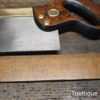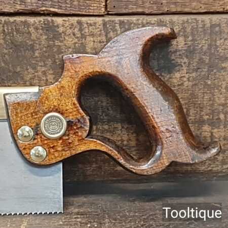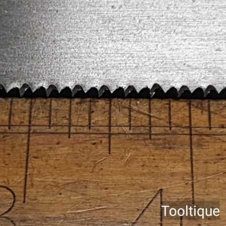The saw has been thoroughly cleaned, jointed, resharpened and set by hand so that all the hard work of getting an old vintage saw right has been undertaken. We do this so that the next sharpening is easier and no more than a quick freshen up would be required.