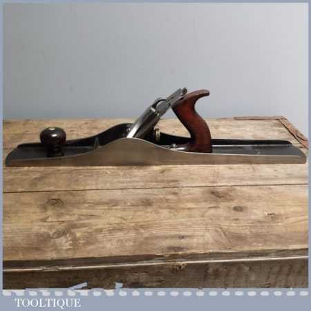 Description: These Early Stanley Bailey planes have a finer casting than the 20th century models making them more manageable for those who generally find the number 7’s to be a bit heavy. Their construction in general is very good with rosewood handles and super quality steel. They shouldn’t be confused with later models as these are far harder to find and ultimately carry a premium not only as a useable tool but from a collectable point. This example is in good condition although there are a couple of areas where it has some pitting to the sole (see images) but is perfectly useable as the day it was made. These early Stanley No:7C are very difficult to find and are scarce.