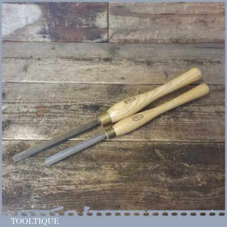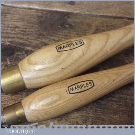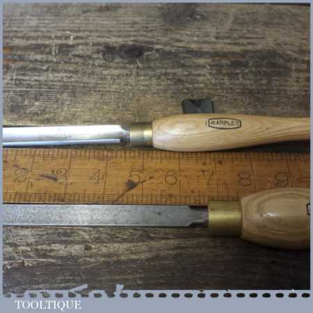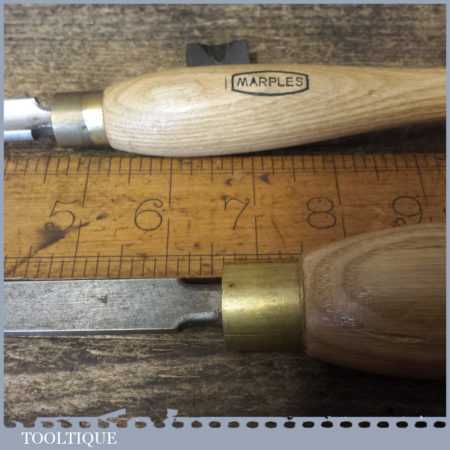 2 No: Marples vintage wood turning chisels with beechwood handles in good used condition, sharpened and honed ready for use.