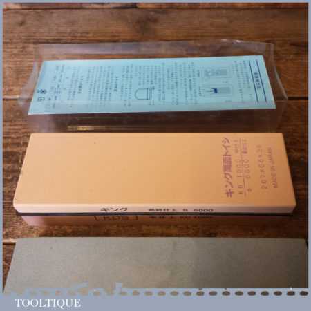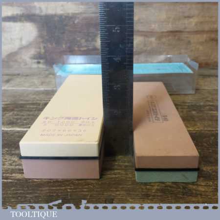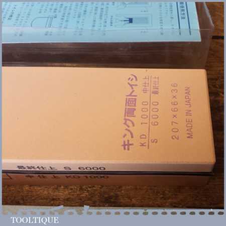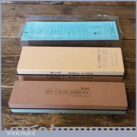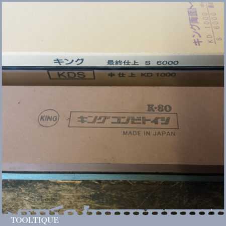 2 No: King KDS Japanese water sharpening whetstones 1000-6000 and a course medium grit generally used for sharpening kitchen knives. These look to be unused and are in good condition.