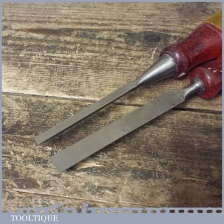 These chisels has been checked to ensure the tang is seated properly and the handle is solid and fit for use. All refurbished chisels are water cooled during the sharpening process to ensure the tempering is not affected. These old cast steel chisels are hand forged and far superior in quality because of the high carbon steel that was used which produces a keener edge, this was also generally used throughout the full length.