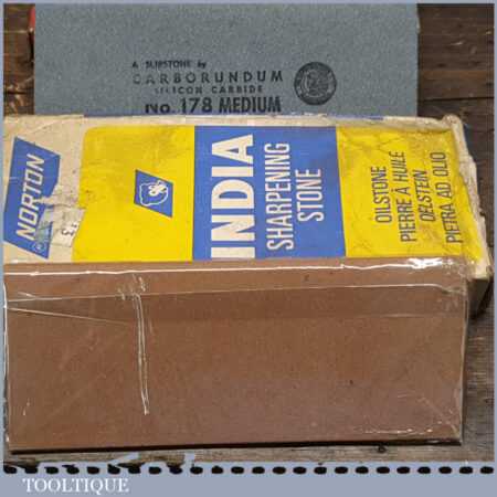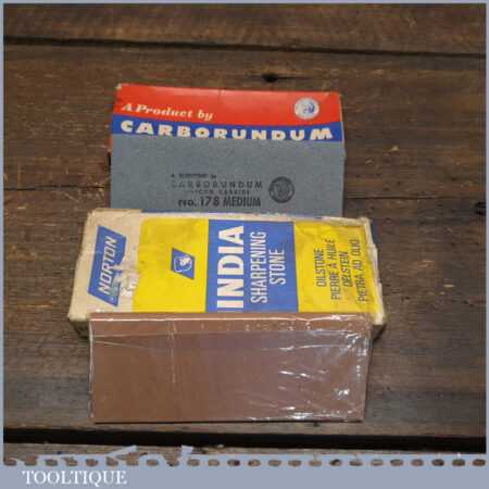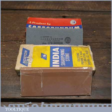 2 No: vintage boxed carborundum and India slip stones (Med & Fine) in little used condition.