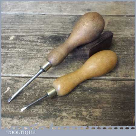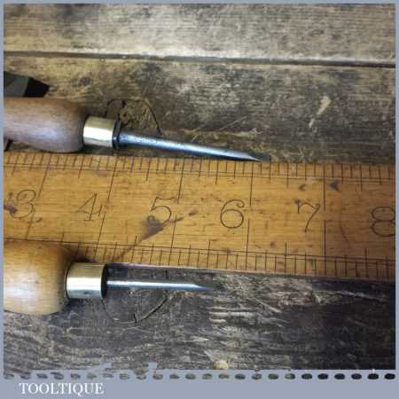 2 No: vintage bradawls with beech wood handles Sizes – 1/8” & 5/32” in good used condition.
