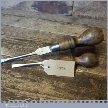 2 No: vintage cabinet makers beechwood handled 8” + 10” screwdrivers, fully refurbished ready for use. These have been water cooled during the reshaping process to ensure they retain their original tempering and will work as they would have originally.