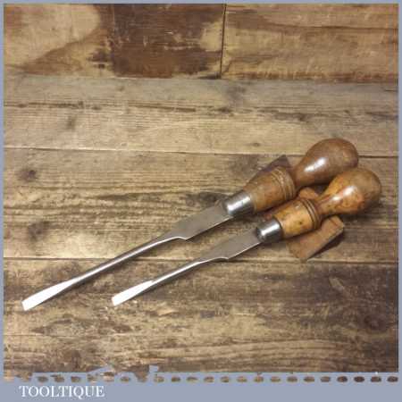 2 No: vintage carpenters beechwood handled screwdrivers, fully refurbished ready for use. These have been water cooled during the reshaping process to ensure they retain their original tempering and will work as they would have originally.