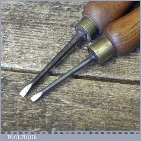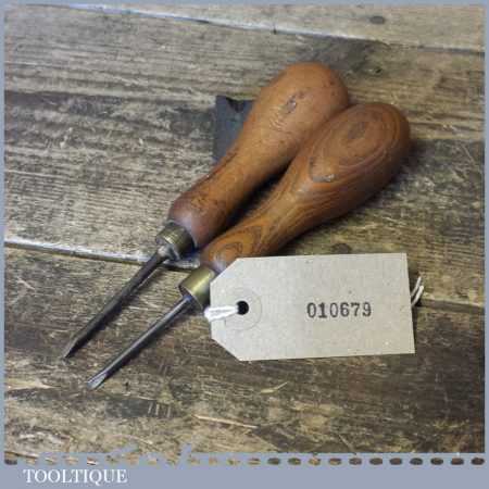 2 No: vintage craftsman bradawls with wooden handles in good used condition.