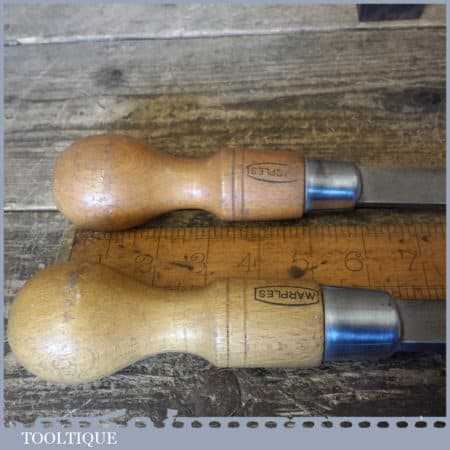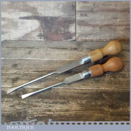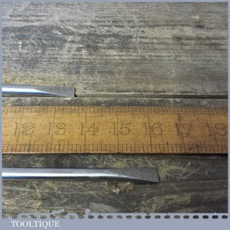 2 No: vintage Marples cabinet makers beechwood handled screwdrivers with ⅜” and ½” tips, they are 13 ½” & 16” in length fully refurbished ready for use, although these have seen little use.. These have been water cooled during the reshaping process to ensure they retain their original tempering and will work as they would have originally