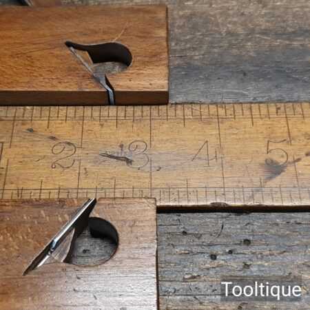 2 No: Vintage 3” approx Miniature Luthiers beechwood rabbet planes in 3/8” & 9/16” widths, refurbished ready for use and in good used condition.