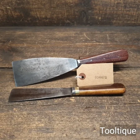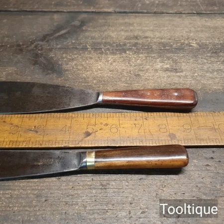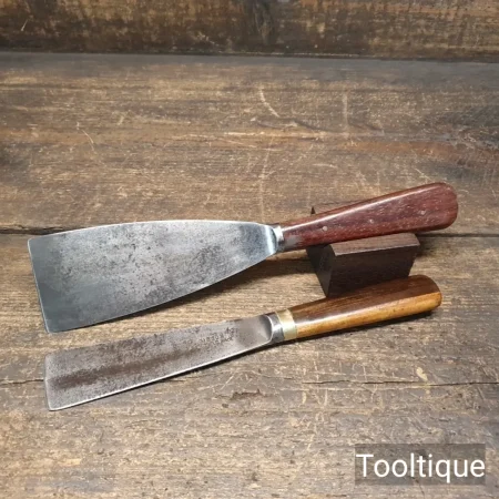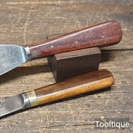 2 No: Vintage Rosewood & Mahogany handled Scrapers 2” + 1 5/16” wide in good used condition.