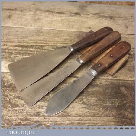 2 No: good quality vintage rosewood handled scrapers (1 ½” & 3”) and 1 No: rosewood handled putty knife in good used condition.