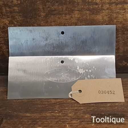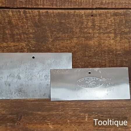 2 No: Vintage Slack Sellers & Co 6” cabinet scrapers in good used condition with crisp edges.