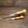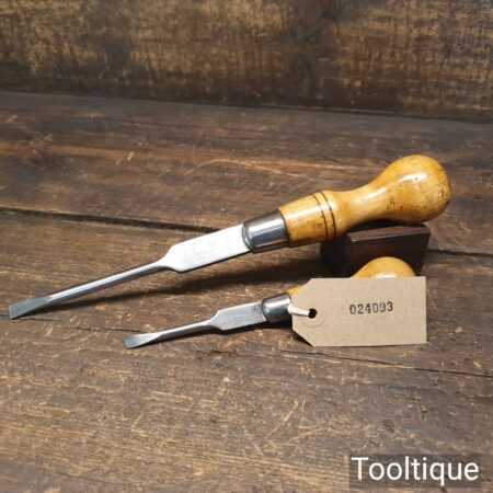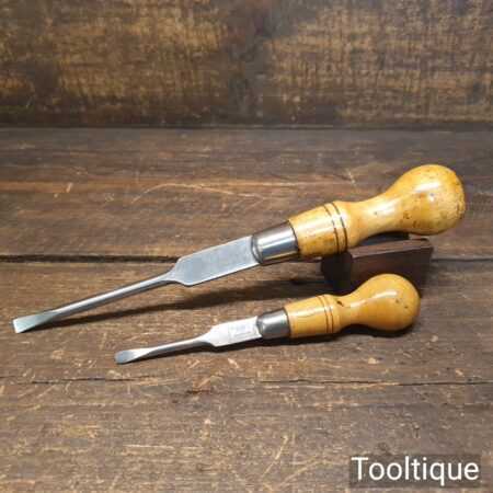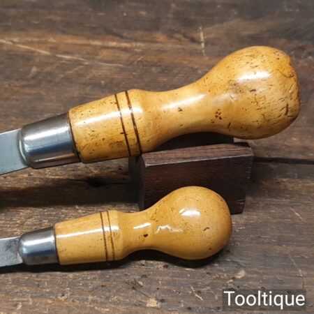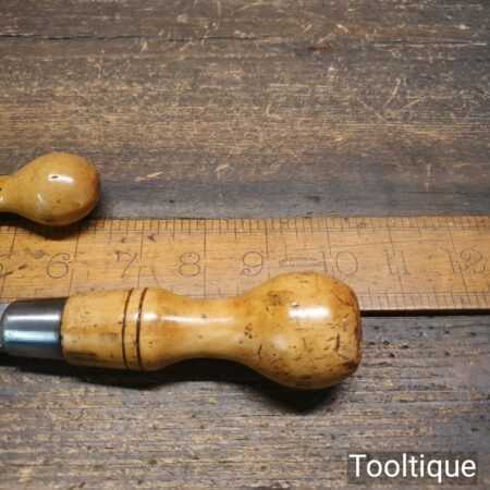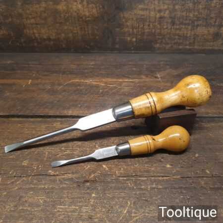 2 No: vintage W. Marples & Sons cabinet maker’s boxwood handled screwdrivers (10” and 6” approx), fully refurbished ready for use. These have been water cooled during the reshaping process to ensure they retain their original tempering and will work as they would have originally