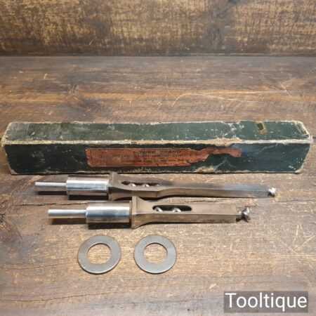 2 No: vintage boxed Wm. Ridgeway hollow square mortise chisels and bits (3/8” and 1/2”) in good used condition.