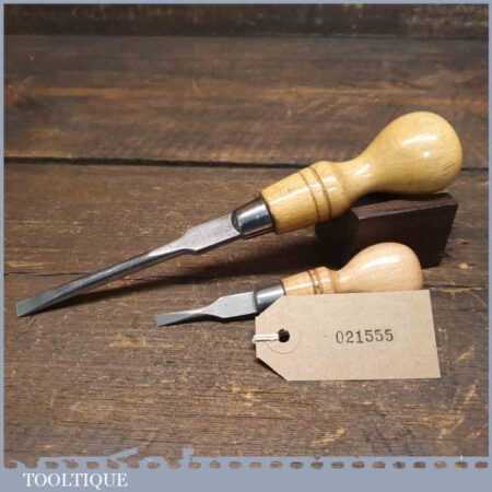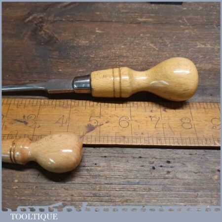 2 No: vintage cabinet makers (8” & 4 ½”) beechwood handled screwdrivers, fully refurbished ready for use. These have been water cooled during the reshaping process to ensure they retain their original tempering and will work as they would have originally