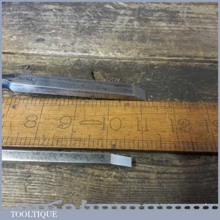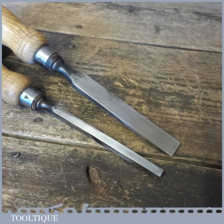 The chisel has been checked to ensure the tang is seated properly and the handle is solid and fit for use. All refurbished chisels are water cooled during the sharpening process to ensure the tempering is not affected. These old cast steel chisels are hand forged and far superior in quality because of the high carbon steel that was used which produces a keener edge, this was also generally used throughout the full length.