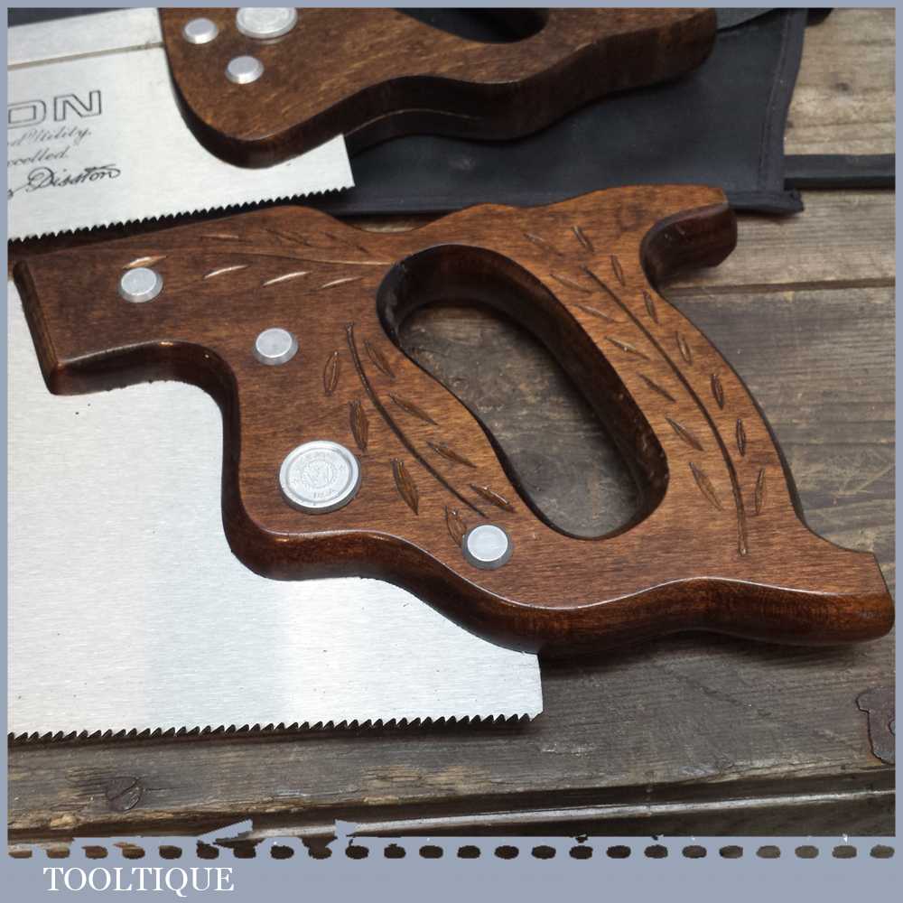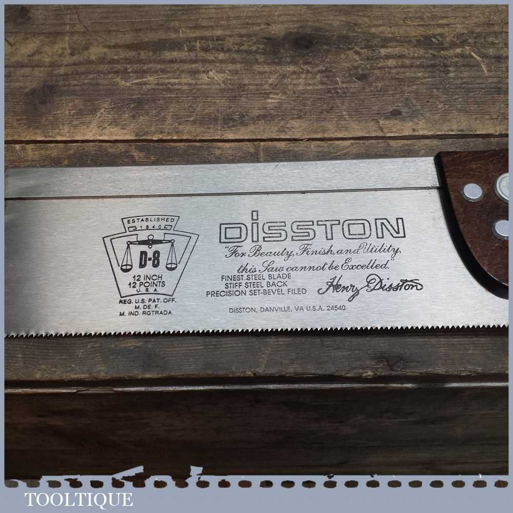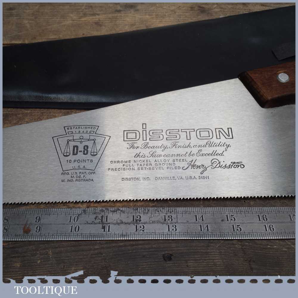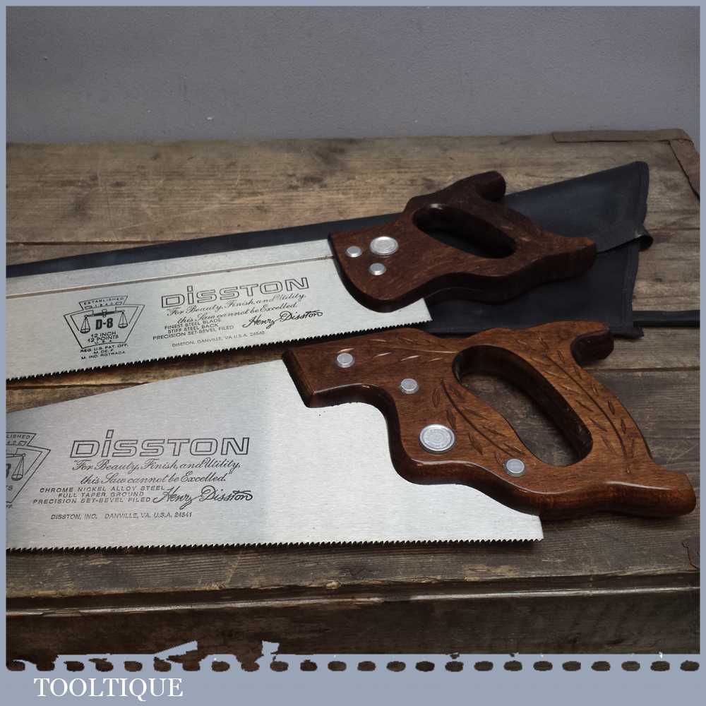 Disston D8 USA 12” steel back saw with 12 tpi and a 22” panel saw with 10 tpi in very good lightly used condition. Both saws are sharp and straight and have seen very little use.