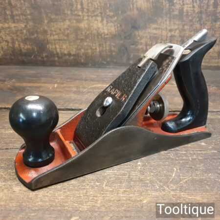 Vintage Rapier No: 400 smoother converted to scrub plane, fully refurbished and in good used condition, ready to use. These are ideal for this purpose due to their wider throat and slightly thicker iron.