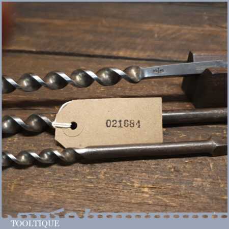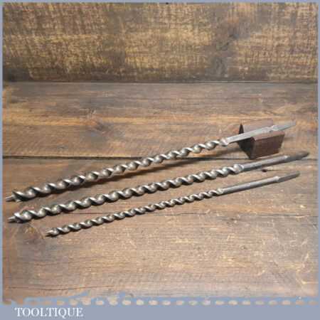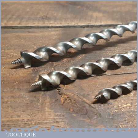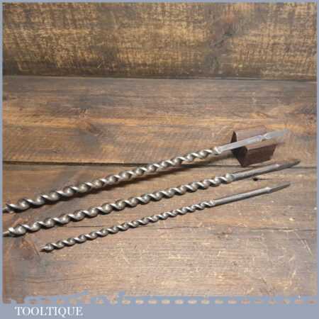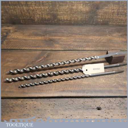 3 No: extra-long screw timber framing brace auger bits by Marples & Ridgway 5/8” + 9/16” + 3/8” in good used condition.