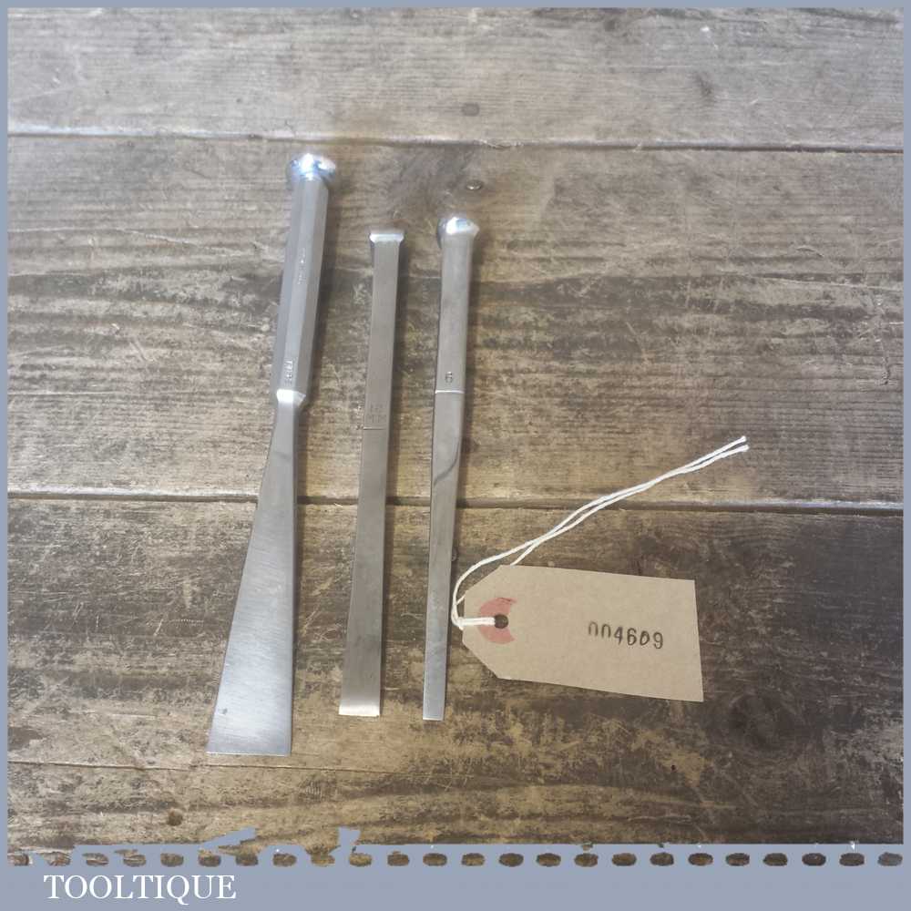 3 No: Surgical stainless steel chisels by Haslam USA & Sklar USA probably suitable for Farriers and Vets 6mm 12mm 18mm widths.