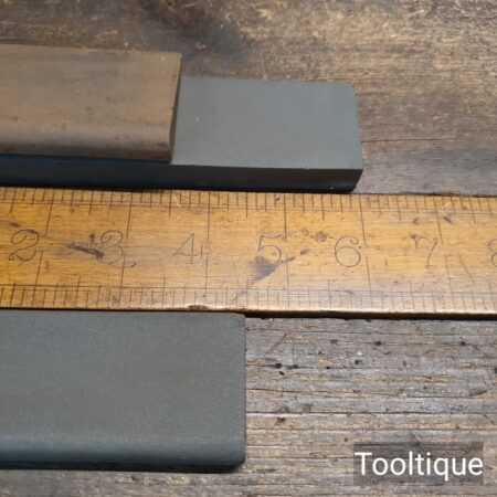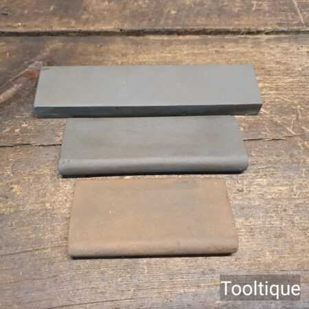 3 No: Vintage carborundum & India oil stones refurbished ready for use and in good used condition. Two slips are carborundum medium grit and India fine grit.