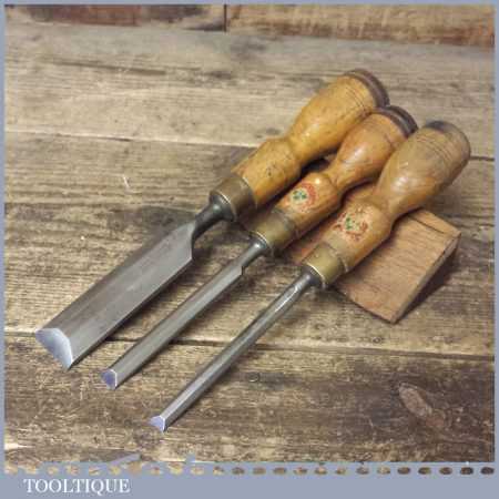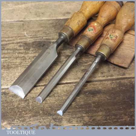These chisels has been checked to ensure the tang is seated properly and the handle is solid and fit for use. All refurbished chisels are water cooled during the sharpening process to ensure the tempering is not affected. These old cast steel chisels are hand forged and far superior in quality because of the high carbon steel that was used which produces a keener edge, this was also generally used throughout the full length.
