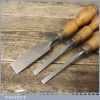 3 No. vintage Marples bevel edge butt chisels (1/4” 3/8” and 1”) with ash handles, in good used condition fully refurbished sharpened and honed ready for use.