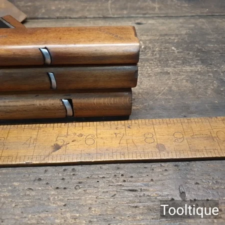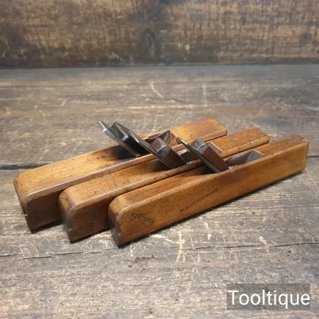 3 No: Vintage Patternmakers Beechwood Round or Hollowing Planes, refurbished ready for use and in good used condition. These measure approx 7 ½” long, Iron width measurements shown in images.