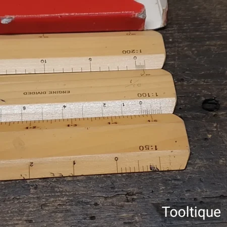 3 No: Vintage RICS Hardwood Metric Engine Divided Scale rules in good used condition.