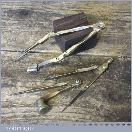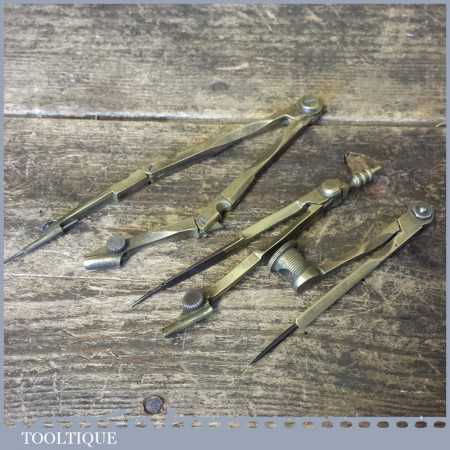 3 No: vintage brass compass & divider tools in good used condition.