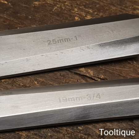 All refurbished chisels are water cooled during the sharpening & Flattening process to ensure the tempering is not affected.