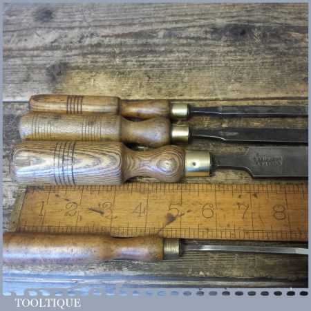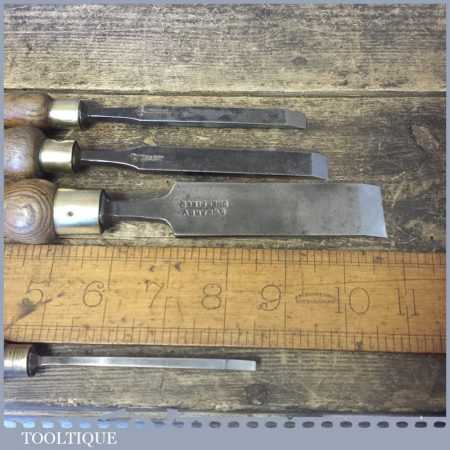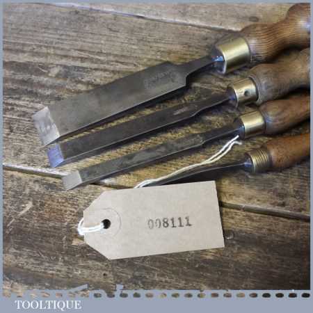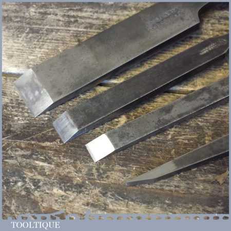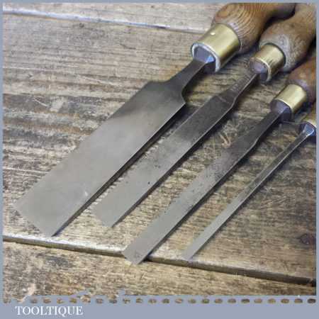 4 No: Vintage (5/32”, 3/8”, 1/2” & 1”) firmer chisels by various makers in good used condition. These chisels have been sharpened and honed and are ready for use.