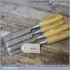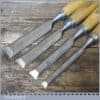 4 No. vintage Marples Ridgeway carpenter’s bevel edge chisels (1/ 2”, 3/4”, 1” and 1 ¼”) with ash handles in good used condition, fully refurbished sharpened and honed ready for use. All refurbished chisels are water cooled during the sharpening process to ensure the tempering is not affected.