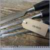 These chisels has been checked to ensure the tang is seated properly and the handle is solid and fit for use. All refurbished chisels are water cooled during the sharpening process to ensure the tempering is not affected. These old cast steel chisels are hand forged and far superior in quality because of the high carbon steel that was used which produces a keener edge, this was also generally used throughout the full length.