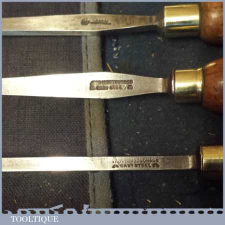 These chisels have been checked to ensure the tangs are seated properly and the handles are solid and fit for use. All refurbished chisels are water cooled during the sharpening process to ensure the tempering is not affected. These old cast steel chisels are hand forged and far superior in quality because of the high carbon steel that was used which produces a keener edge, this was also generally used throughout the full length.