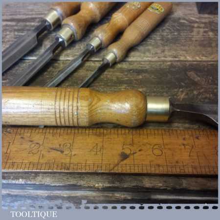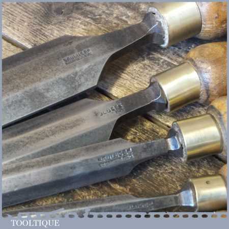 The chisels have been checked to ensure the tangs are seated properly and the handles are solid and fit for use. All refurbished chisels are water cooled during the sharpening process to ensure the tempering is not affected. These old cast steel chisels are hand forged and far superior in quality because of the high carbon steel that was used which produces a keener edge, this was also generally used throughout the full length