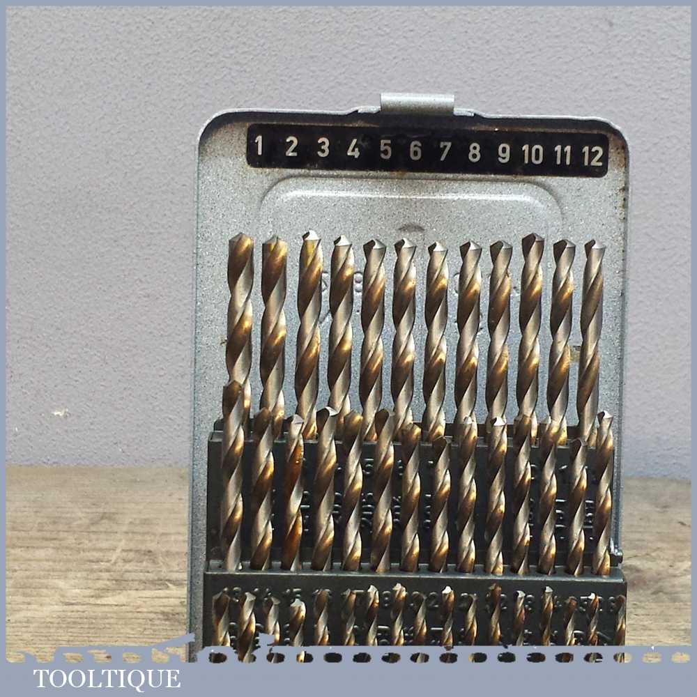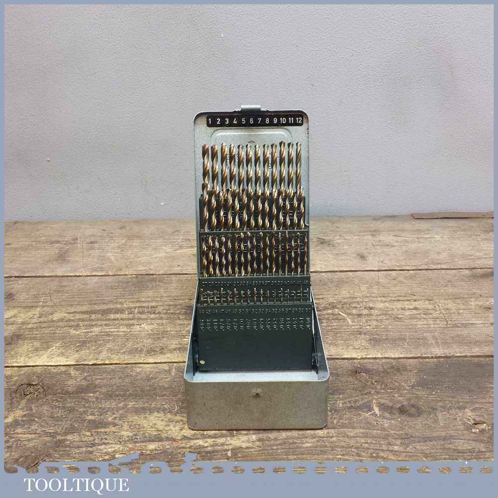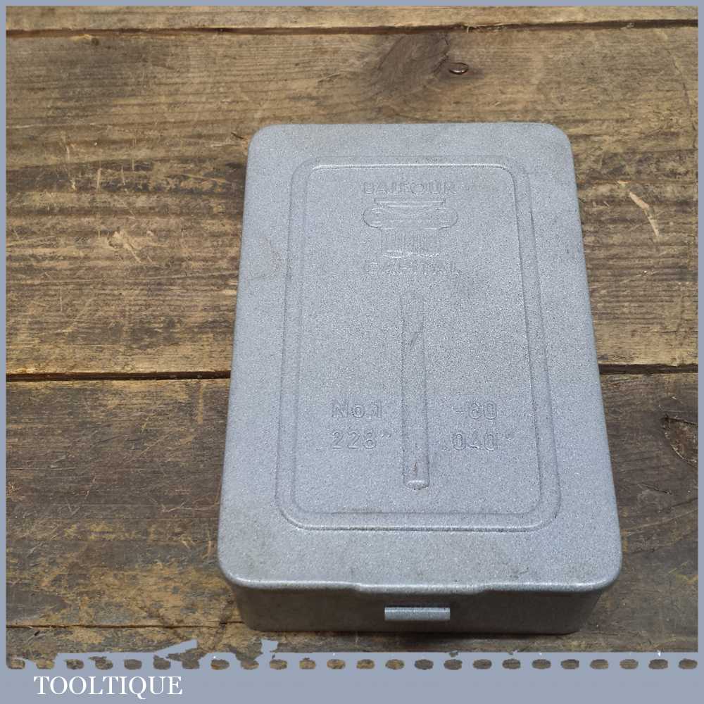 Balfour Capital drill bit set in a steel case in good used condition. Note: not all the bits have been used and some have may have been re-sharpened but generally these are in good order.