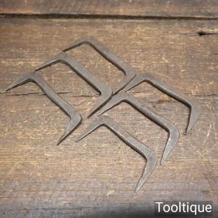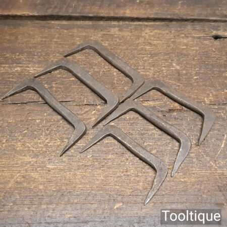 6 No: Vintage hand forged 3” joiner’s dogs in good used condition 3 are 2 ¾ wide and 3 are 3” wide.