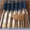 6 No: vintage Stanley carpenter’s No: 5002 socketed bevel edge chisels with plastic handles in good used condition, fully refurbished sharpened and honed ready for use.