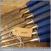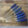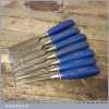 7 No: vintage Marples Blue Chip socketed bevel edge chisels (from ¼” to 1 ¼”) in good used condition, fully refurbished sharpened and honed ready for use.