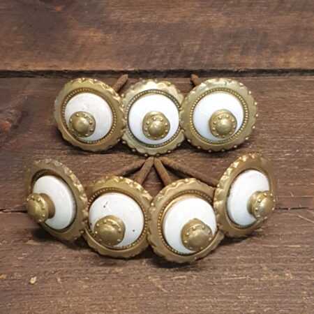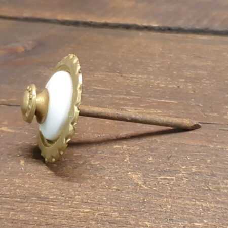 7 No: Vintage patented Enameled White and brass decorative nail fastenings.