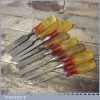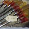 8 No: Vintage Marples Shamrock carpenter’s bevel edge and firmer chisels (from 1/8” to 1”) with shatterproof handles, in good used condition fully refurbished sharpened and honed ready for use. Note: These are the old type, Not Irwin.