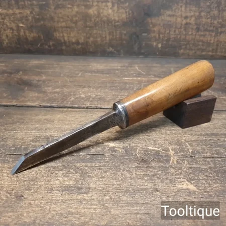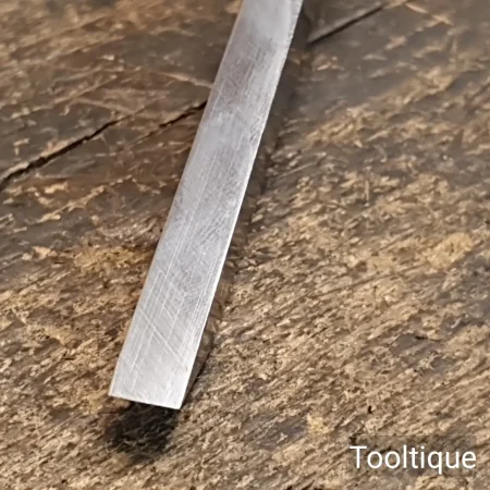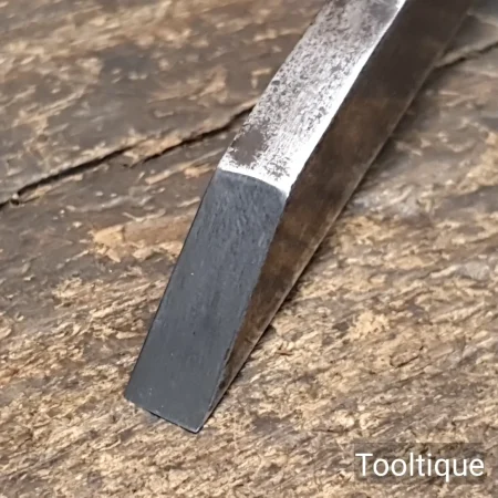 Antique ¼” Mitchell & Co. Carpenters Pigsticker Mortice Chisel, refurbished ready for use and in good used condition. All refurbished chisels are water cooled during the sharpening & face flattening process to ensure the tempering is not affected.