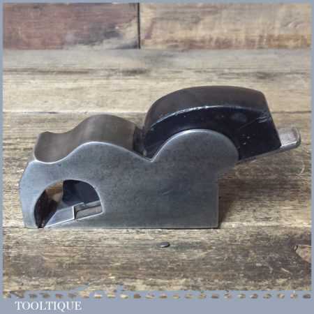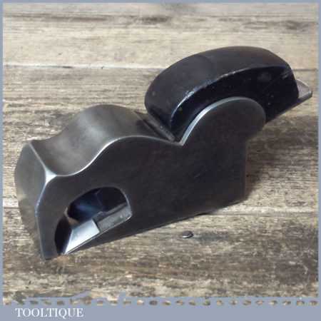 Antique 1 ¼” cast steel bullnose plane with ebony wedge, in good user condition. Note: A couple of small dings in the sole abut a perfectly usable plane.