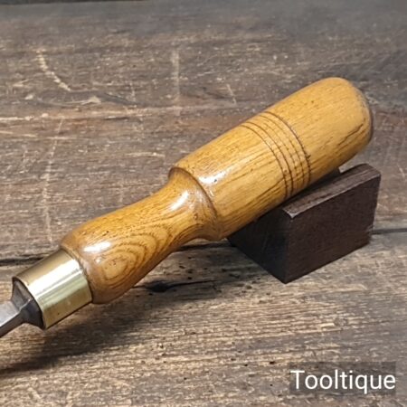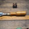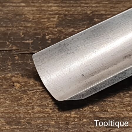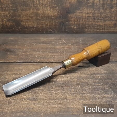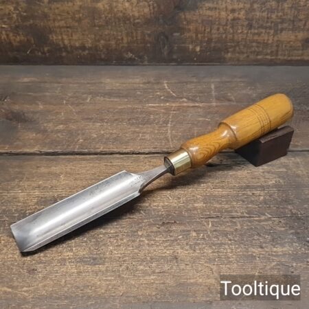 Antique 1 ¼” Kenyon Carpenters Cast Steel Gouge Chisel with an Ashwood Handle, refurbished ready for use and in good used condition. Note: Measurement in image shows cutting edge length.