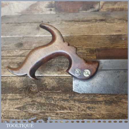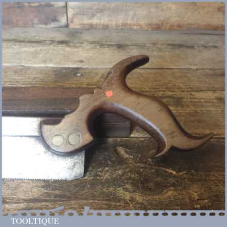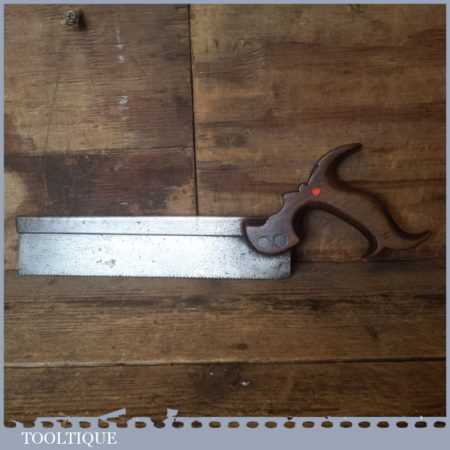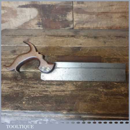 Antique 10” steel back dovetail saw with 16 tpi and pistol grip handle, fully refurbished and sharpened as a rip ready for use.