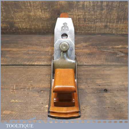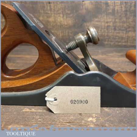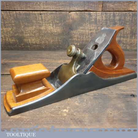 Antique 13½” Scottish pattern panel plane with beechwood infill and handle, in good used condition. The plane has obviously undergone a complete infill restoration but the plane required more work to address its usability. This has been lapped flat to 0.025mm which as much needed and fitted with a more suitable thicker Parallel iron to help close the wide throat and now works as it should and is a nice plane